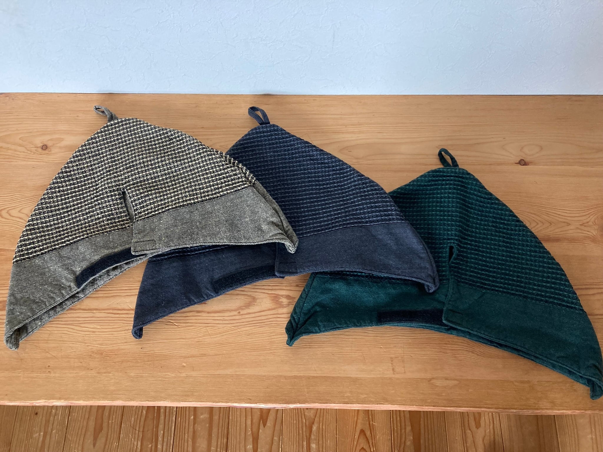 サウナの熱から髪と頭皮を守る柔らかなコットン素材。